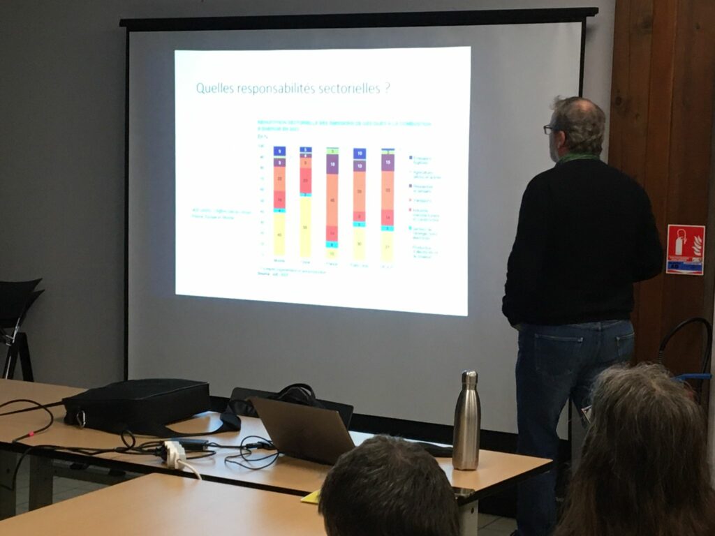 😉 21 personnes ont participé à cet échange, animé par Lionel LEMIALE , Maître de Conférences en Economie à l’IAE Nantes . Après un rappel du niveau des émissions de l’ensemble des gaz à effet de serre, notre intervenant nous a présenté les secteurs les plus émetteurs de CO2 et les variations en fonction des pays. Les moyens et outils, instruments mis en oeuvre pour atteindre un objectif de baisse ou de neutralité carbone sont donc différents en fonction des stratégies de chaque pays (Geopolitique).